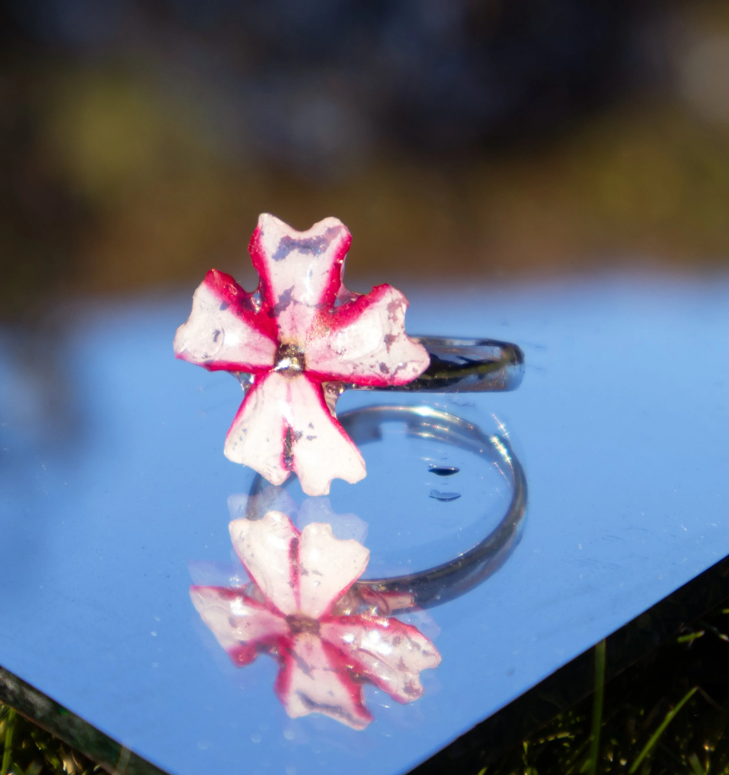 Once dried, I coat each petal in multiple layers of UV resin. A slow, careful process that preserves them and gives a glass-like finish.